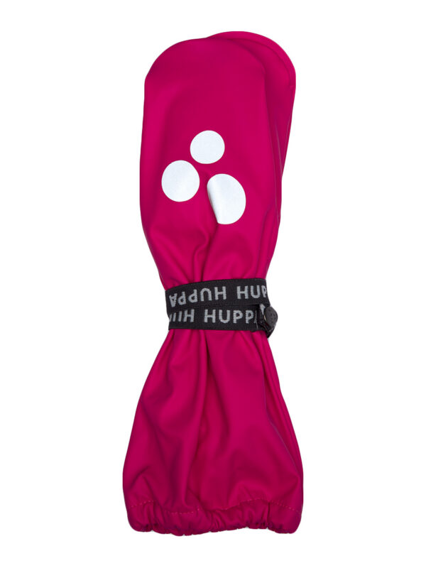 Children’s windproof rain mittens Elastic band with Huppa logo on wrist Integrated elastic band at bottom Waterproof taped seams keep the mittens dry Reflective elements on fabric