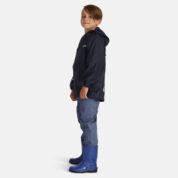 Bērnu vēja necaurlaidīgā lietus jaka Piedurknēs un ap kapuci iestrādāta gumijas apdare Jaku sausu palīdz uzturēt līmētie izšuvumi Auduma virspusē atstarojošas detaļas
