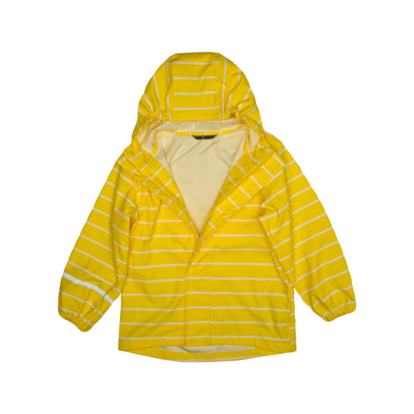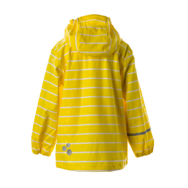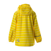Children’s windproof rain jacket Integrated elastic band at sleeve ends and around hood Taped seams to keep the jacket dry Reflective elements on fabric