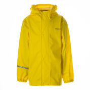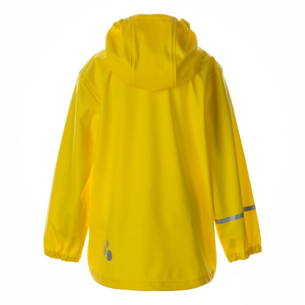 Children’s windproof rain jacket Integrated elastic band at sleeve ends and around hood Taped seams to keep the jacket dry Reflective elements on fabric