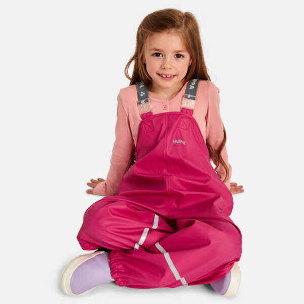 Children´s windproof rain bib pants. Adjustable elastic braces. Silicone foot straps. Waterproof taped seams help keep the pants dry. Reflective elements on fabric.