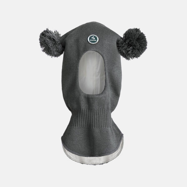 Children’s merino wool knit hat-scarf. Cotton jersey on the inside. Reflective Huppa logo.