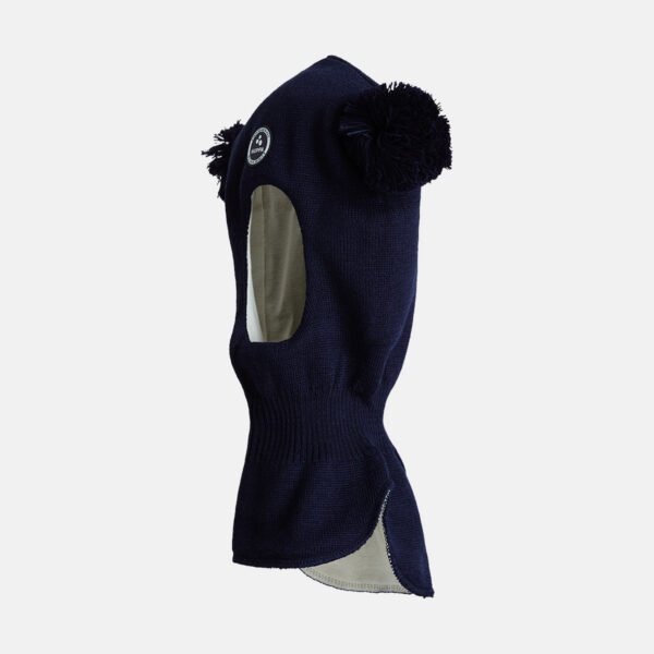 Children’s merino wool knit hat-scarf. Cotton jersey on the inside. Reflective Huppa logo.