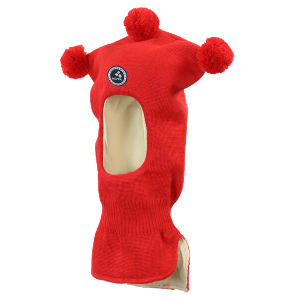 Classic children´s scarf hat with three tassels. The hat has a cotton jersey lining and a top made of 50% merino wool, 50% acrylic yarn. The scarf hat is ideal for wearing in cold winter weather, as it protects the child´s neck and ears from the cold wind.