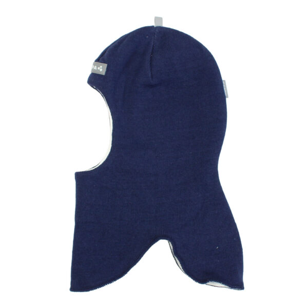 Toddler spring-autumn scarf hat. It´s knitted from a 60% cotton, 40% acrylic yarn blend and the lining is soft cotton jersey. The hat is decorated with a cute little reflective ribbon and the Huppa logo on the front. For more comfortable wearing, the front and back of the hat are of different lengths.