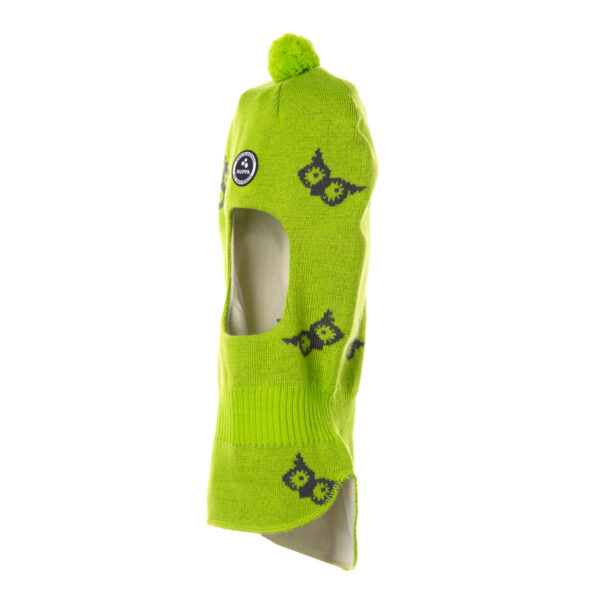 Children’s merino wool blend knit hat-scarf. Cotton jersey on the inside. Reflective Huppa logo.