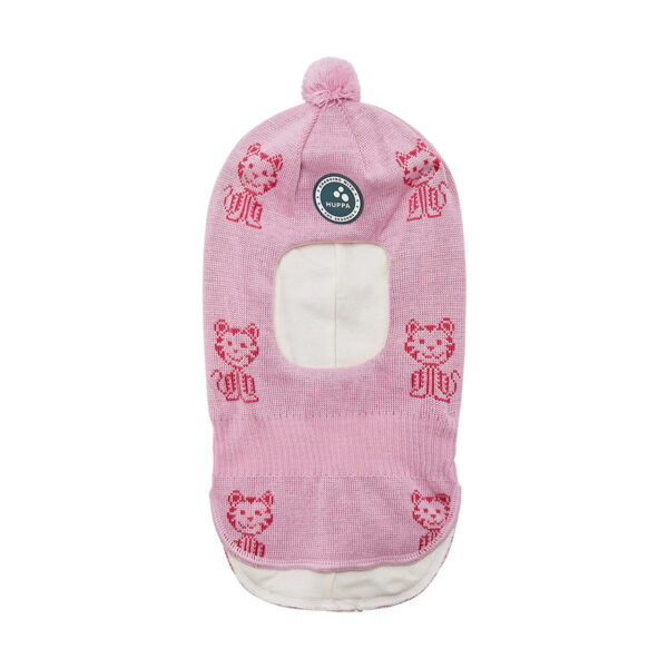 Children’s merino wool blend knit hat-scarf. Cotton jersey on the inside. Reflective Huppa logo.