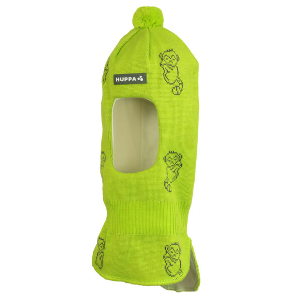 Children’s merino wool blend knit hat-scarf. Cotton jersey on the inside. Reflective Huppa logo.