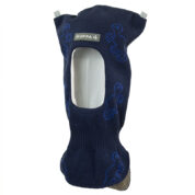 Children´s scarf hat knitted from cotton blend yarn. The inside of the hat is made of cotton knitted fabric. Reflective details on the hat.