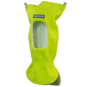 Children´s scarf hat knitted from cotton blend yarn. The inside of the hat is made of cotton knitted fabric. Reflective details on the hat.