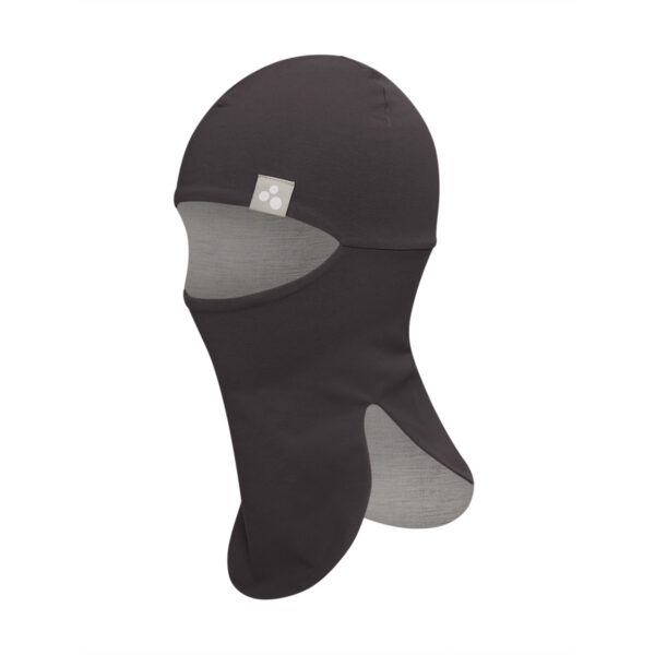 Kids’ soft cotton blend jersey scarfhat. The inner lining of the scarfhat is made of merino wool. It also has a reflective Huppa logo on it.