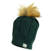 Children´s hat with fleece lining, knitted from soft yarn. Faux fur pompom. Reflective Huppa logo on the hat.