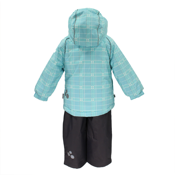 Laste talvekomplekt. Vooder. Taffeta+ fleece . Kanga hingavus ja vettpidavus 10 000/10 000. Jope soojustus: 200g. Trukkidega eemaldatav kapuuts. Lukkudega taskud. Pükste soojustus 100g. Teibitud istmikuõmblus.