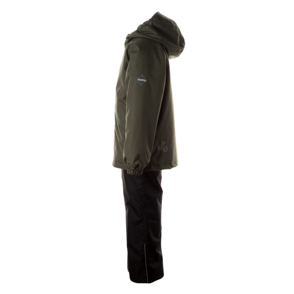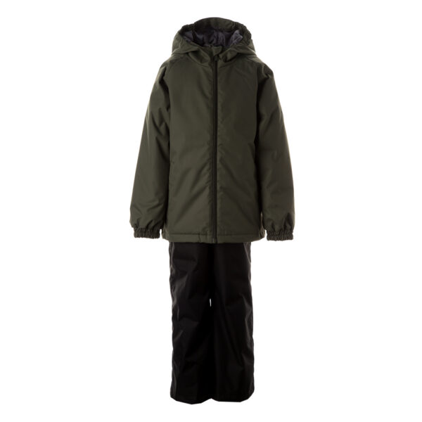 Children´s transition season jacket and pants set. Water and wind-resistant breathable outer fabric. Rubber band incorporated in the sleeve ends and the edge of the hood. Adjustable elastic cord tunnel at the bottom. Wide elastic band incorporated in the waste of the trousers. Both jackets and trousers have reflective details.