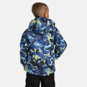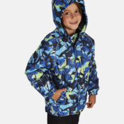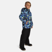 Children’s jacket and pants set Waterproof, windproof and breathable fabric. Soft lining on the inside of the jacket and pants. Integrated elastic band at sleeve ends and around hood. Removable snap-on hood. The bib-pants have elastic adjustable suspenders. Integrated elastic band on waist. Drawstring tunnel with stoppers at leg ends. Waterproof taped seams. The pants have no inner leg seam. Reflective details on both jacket and pants.