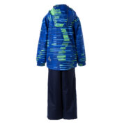 Bērnu starpsezonas jakas un bikšu komplekts. Ūdens- un vēja izturīgs, elpojošs virsaudums. Jakas un bikšu iekšpusē ir mīksts oderaudums. Piedurkņu galos un kapuces malā iestrādāta gumijas lente. Noņemamā kapuce pie apkakles nostiprināma ar spiedpogām. Biksēm ir augstāka jostasvieta un regulējamas, elastīgas lences. Jostasvietā iestrādāta gumijas lente. Staru galos gumijas auklas tunelis ar iestrādātām atdurēm. Ūdensnoturīga, stepēta sēžas šuve. Biksēm nav staras iekšējās šuves. Gan jakai, gan biksēm ir atstarojošas detaļas.