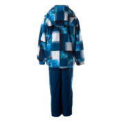 Children´s transition season jacket and pants set. Water- and windproof, breathable outer fabric. The inside of the jacket and trousers is made of soft lining fabric. Rubber band incorporated in the sleeve ends and the edge of the hood. The removable hood attaches to the collar with press studs. The trousers have a higher waist and adjustable elastic braces. incorporated rubber waistband. Rubber band tunnel with stoppers at the ends of the legs. Waterproof taped seat seam. The pants have no inseam on the leg. Both jackets and trousers have reflective details.
