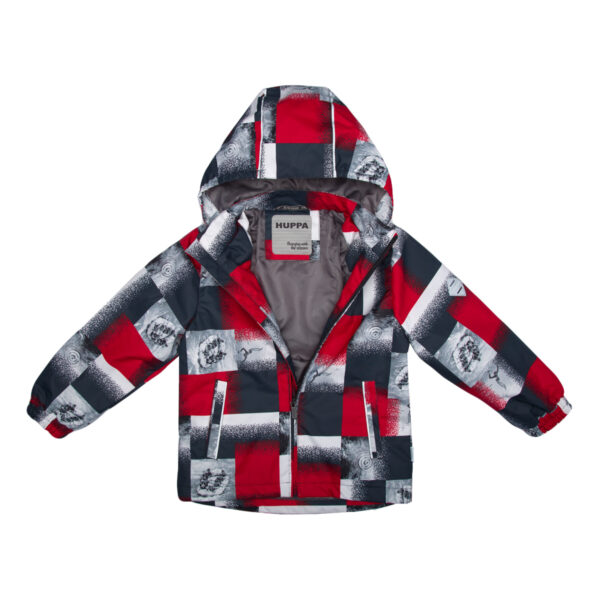 Children´s transition season jacket and pants set. Water- and windproof, breathable outer fabric. The inside of the jacket and trousers is made of soft lining fabric. Rubber band incorporated in the sleeve ends and the edge of the hood. The removable hood attaches to the collar with press studs. The trousers have a higher waist and adjustable elastic braces. incorporated rubber waistband. Rubber band tunnel with stoppers at the ends of the legs. Waterproof taped seat seam. The pants have no inseam on the leg. Both jackets and trousers have reflective details.