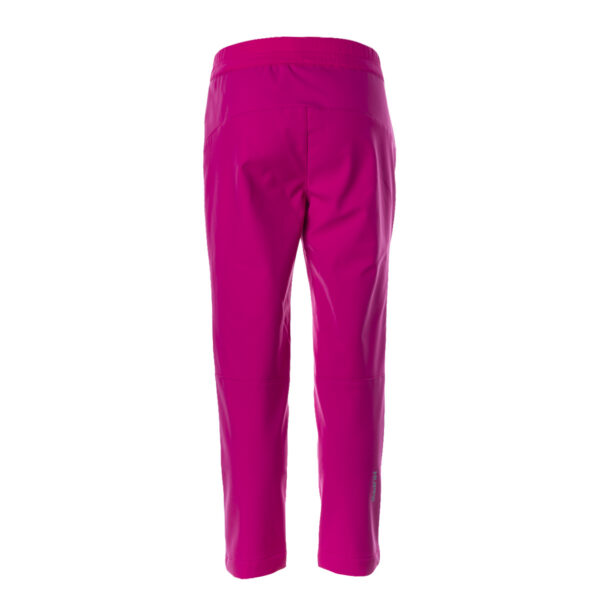 Kids´ windproof Softshell pants. The pants have an inner lining made of a soft brushed material and a wide sewn-in elastic band on the waistline. Integrated zipper pocket. The pants are decorated with a reflective logo on the lower leg.