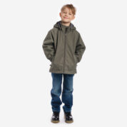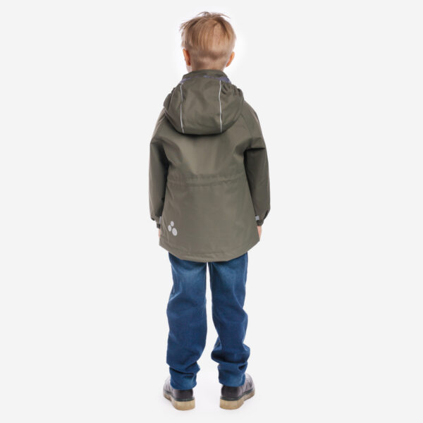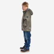 Children´s waterproof and windproof spring-autumn jacket with 40g insulation. Breathable outer fabric. Rubber band incorporated at the edge of the hood. The removable hood attaches to the collar with press studs. Rubber band tunnel with stoppers incorporated at the bottom. Zippered pockets. Reflective details on the outer fabric.