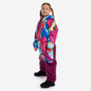Insulated (40 g) water- and windproof overall for kids, suitable for spring and autumn. The top layer of the overall is made of a breathable material. It has sewn-in elastic bands on the sleeves, ankles and hood. The detachable hood can be attached to the collar with snap fasteners. The overall has a sewn-in buttonhole elastic on the waistline and waterproof, taped seams. The set includes elastic foot straps. It is decorated with reflective details.
