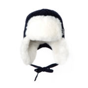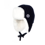 Children´s hat with lining, knitted from soft merino blend yarn. Inside of the hat made of cotton jersey. Imitation sheepskin lining on the front and ears. Reflective Huppa logo on the hat.