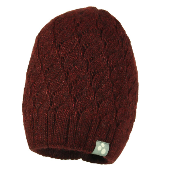 Double-knit warm hat. Composition: 51% acrylic, 28% viscose, 14% mohair, 7% wool.