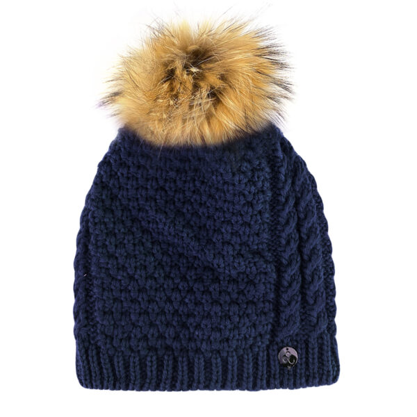 Suaugusių minkštų siūlų megzta kepurė su fliso pamušalu. Kepurės kutas iš natūralaus kailio.