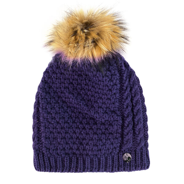 Suaugusių minkštų siūlų megzta kepurė su fliso pamušalu. Kepurės kutas iš natūralaus kailio.