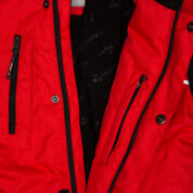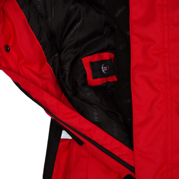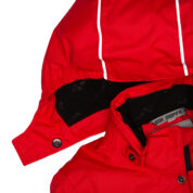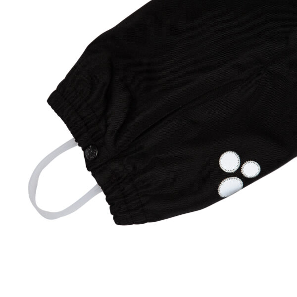 Vaikiškas neperšlampamas ir neperpučiamas kombinezonas su 200 g šiltinamuoju sluoksniu. Laidus orui išorinis audinys. Vidinėje pusėje minkštas pamušalo audinys. Nuimamas gobtuvas. Reguliuojama įsiūta guminė juostelė galinėje dalyje ir gobtuvo kraštuose. Tamprūs rankogaliai. Reguliuojami rankogaliai. Priekinis užtrauktukas dengtas juostele. Priekinės kišenės ir krūtinės kišenė su užtrauktukais. Juosmens srityje guminė juosta su kilpomis. Klešnės iš patvaraus „Cordura“ audinio. Neperšlampamos dengtos siūlės. Šviesą atspindinčios detalės ant viršutinio audinio.