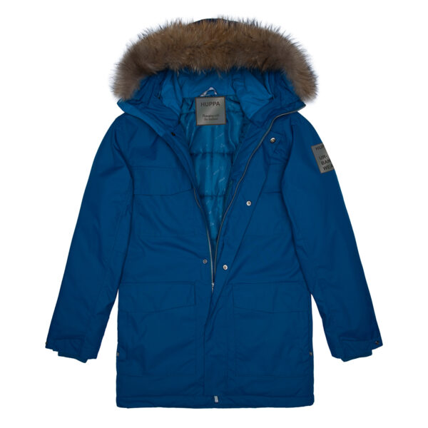 Men´s winter parka with 200g insulation. The outer fabric is wind and water resistant, and the taped seams keep you warm and dry. The hood has a removable fur, and the top pockets are closed with snaps and the side pockets with zippers. The reflective details added to the parka ensure visibility in the dark.