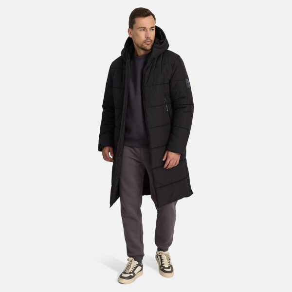 Ūdensdrošs un vēja necaurlaidīgs vīriešu ziemas mētelis ar siltinājumu 300 g. Elpojošais virsējais materiāls ir izgatavots no pārstrādātām šķiedrām. Regulējama kapuce. Elastīgas piedurkņu manšetes. Priekšējā aizdarē divvirzienu rāvējslēdzējs. Kabatas ar rāvējslēdzēju. Uz virsējā materiāla atstarojošas detaļas.