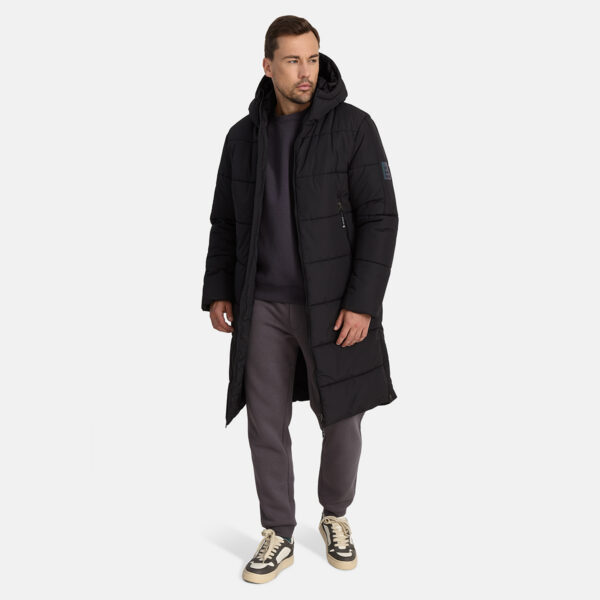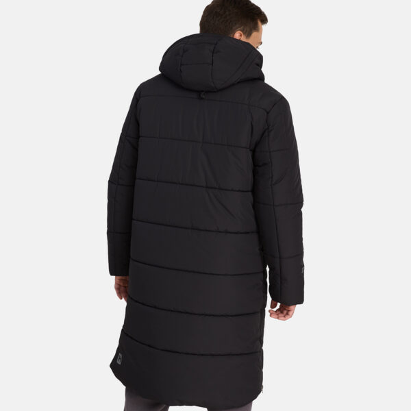 Men’s water- and windproof winter coat with 300 g insulation. The breathable outer fabric is made from recycled fibres. Adjustable hood. Elastic cuffs on sleeves. Front two-way zipper. Zipper pockets. Reflective detailing on outer fabric.