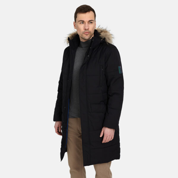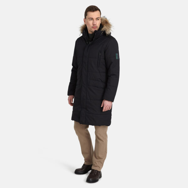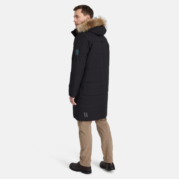 Men´s waterproof and windproof parka with 200g insulation. The parka has chest pockets with zippers and front pockets with magnets. The hood with natural fur is removable, which makes it easy to maintain. Reflective details.