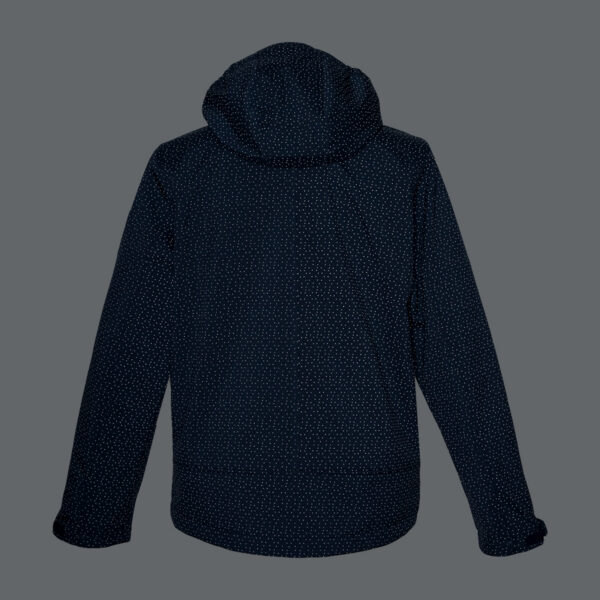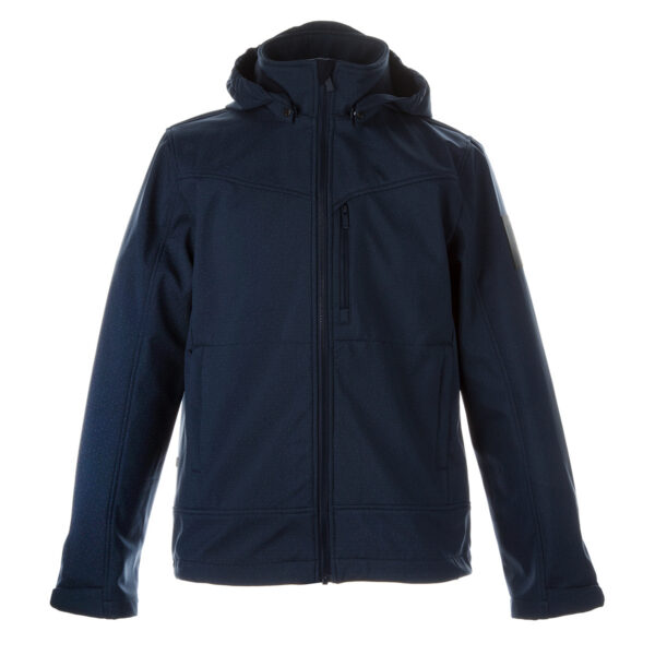 Men’s windproof Softshell jacket. Brushed soft on the inside. Integrated elastic band around the hood. Removable snap-on hood. Adjustable sleeve ends. Integrated zippered pockets. Adjustable drawstring tunnel at bottom. Reflective elements.