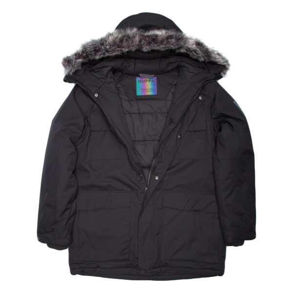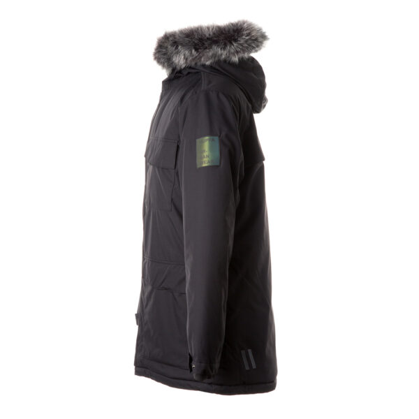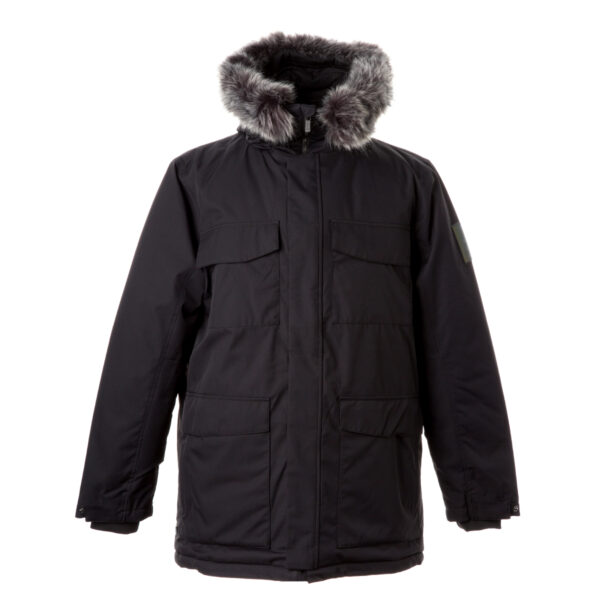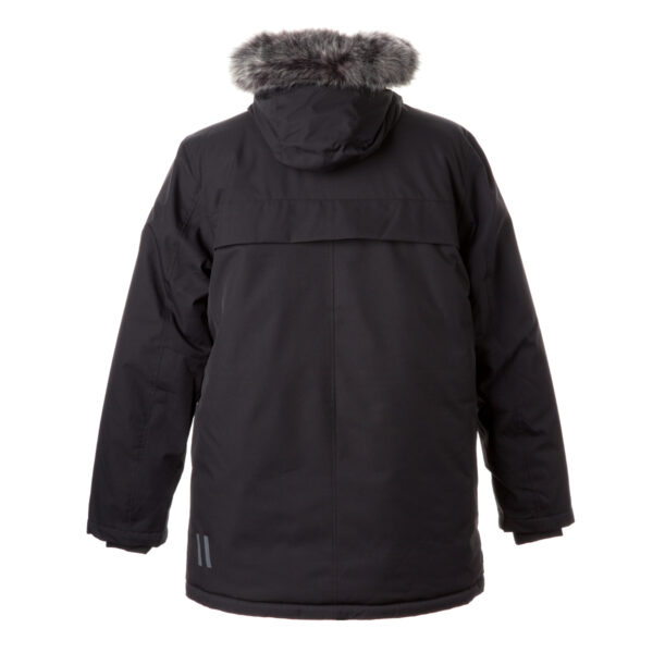 Men´s winter parka with 200g insulation. The outer fabric is wind and water resistant, and the taped seams keep you warm and dry. The hood has a removable fur, and the top pockets are closed with snaps and the side pockets with zippers. The reflective details added to the parka ensure visibility in the dark.