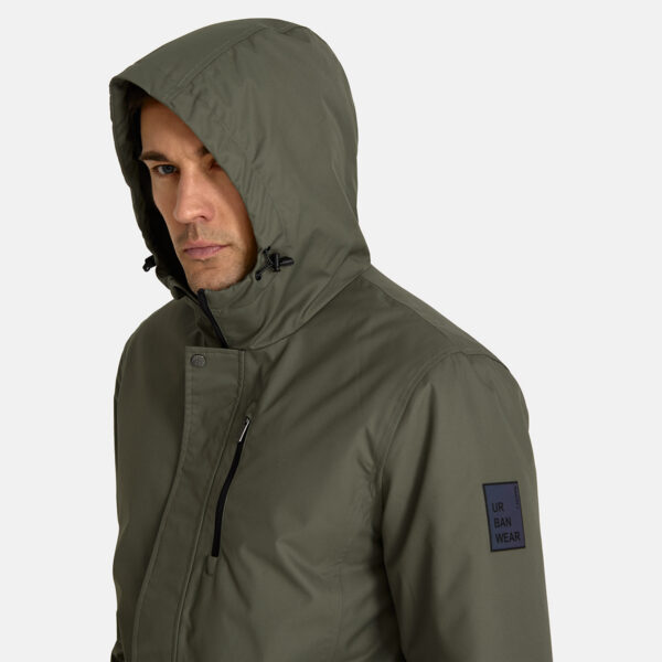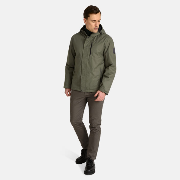 Insulated (40 g) water- and windproof jacket for men, suitable for spring and autumn. The outer fabric is breathable. The lining of the jacket is soft. Adjustable hood and sleeve cuffs. Waterproof taped seams. The outer fabric is decorated with reflective details.