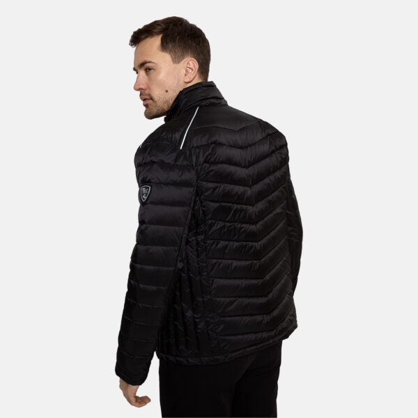 Men´s quilted jacket Windproof slightly glossy top fabric The jacket is filled with innovative recycled material imitating the properties of feather fill The material is warm, dries quickly and does not clump after washing A great to natural feather fill