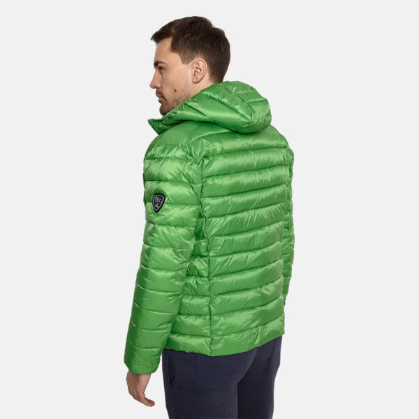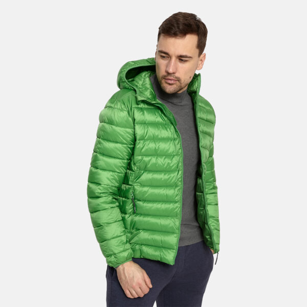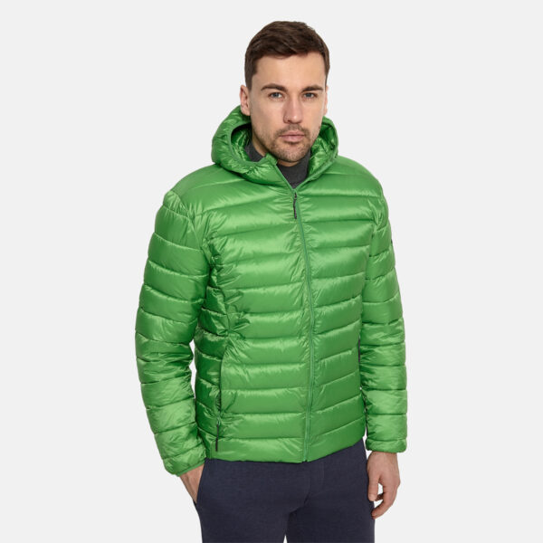 Men´s quilted jacket. Windproof slightly glossy top fabric. The jacket is filled with innovative recycled material imitating the properties of feather fill. The material is warm, dries quickly and does not clump after washing. A great alternative to natural feather fill.