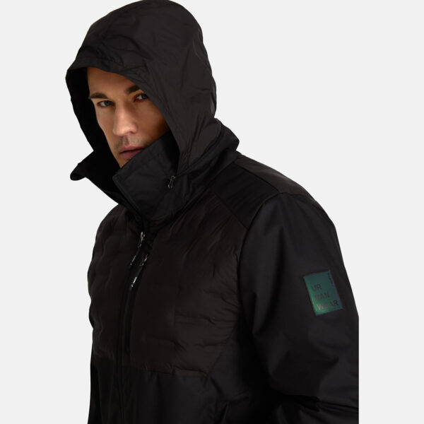 Ūdens un vēja noturīga pavasara-rudens jaka ar 40 g siltinājumu vīriešiem. Elpojošs virsaudums. Jakas iekšpusē mīksts oderaudums. Stāvkrādziņā ievietojama (noslēpjama) kapuce. Regulējami piedurkņu gali. Ūdensnoturīgas, stepētas šuves. Uz virsauduma atstarojošas detaļas. Prece satur materiālus no atkārtoti izmantotām šķiedrām.