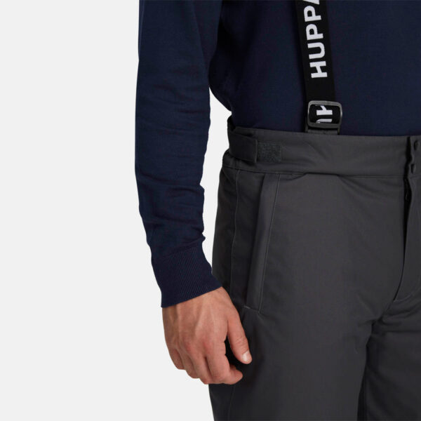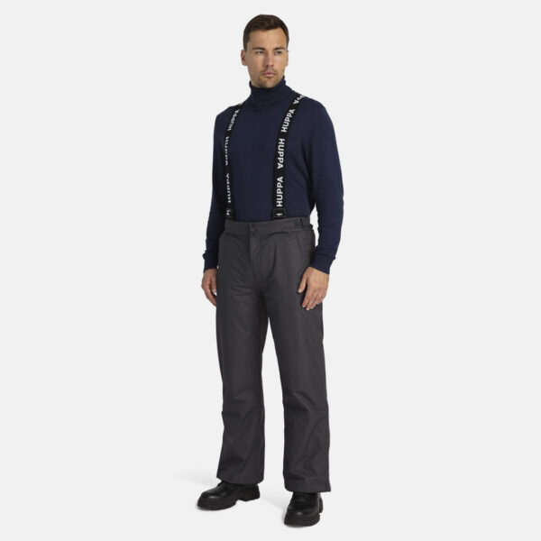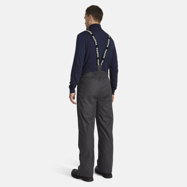 Men’s waterproof and windproof pants. Breathable fabric. Soft mesh lining on the inside of the pants. Adjustable removable braces. Adjustable waist. Integrated elastic band at the back of the waist. Integrated zippered pockets. Snow gaiters at leg ends. Zipper-adjustable leg end width. Waterproof taped seams. Reflective elements at the bottom.