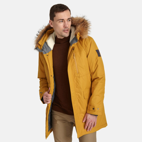 Vyriška neperšlampama ir neperpučiama žieminė parka su 200g pašiltinimu HUPPA TERM(sintetinė medžiaga). Orui laidi išorinė medžiaga. Parkos pamušalas iš minkšto Teddy Fur audinio. Nusisega gobtuvas su naturaliu kailiuku Rankogaliai su velcro reguliavimu. Dvipusis užtrauktukas .Kišenės su atvartais užsegamos magnetu. Juosmenyje įsiūta guminė juostelė su fiksatoriais. Vandeniui atsparios klijuotos siūlės. Šviesą atspindinčios detalės.
