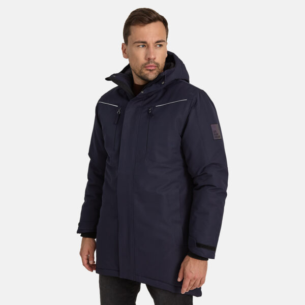 Men’s water- and windproof winter parka with 300 g insulation. Breathable outer fabric. Soft lining fabric inside the parka. Adjustable hood and sleeve cuffs. Ribbed cuffs on sleeves. Waterproof taped seams. Reflective detailing on outer fabric.