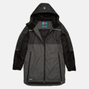 Insulated (100 g) water- and windproof between-seasons parka for men. The outer fabric is breathable. The lining of the parka is soft. It has an adjustable hood. Sewn-in elastic bands in the sleeves. Adjustable waist with stoppers. Waterproof taped seams. There is extra room with zippers and the parka has hidden side pockets. The outer fabric is decorated with reflective details.
