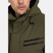 Men’s waterproof and windproof semi-season parka. Breathable fabric. Soft lining on the inside. Adjustable hood and sleeve ends. Ribbed cuffs at sleeve ends. Integrated breast pockets with waterproof zippers. Waterproof taped seams. Reflective elements on fabric.