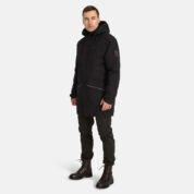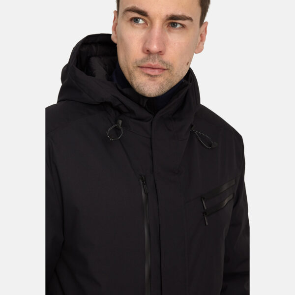 Men’s waterproof and windproof semi-season parka. Breathable fabric. Soft lining on the inside. Adjustable hood and sleeve ends. Ribbed cuffs at sleeve ends. Integrated breast pockets with waterproof zippers. Waterproof taped seams. Reflective elements on fabric.