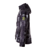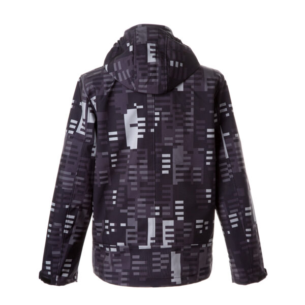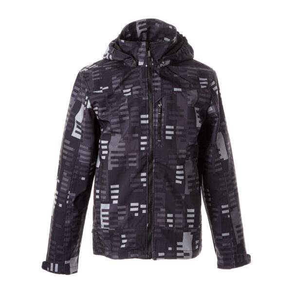Men’s windproof Softshell jacket. Brushed soft on the inside. Integrated elastic band around the hood. Removable snap-on hood. Adjustable sleeve ends. Integrated zippered pockets. Adjustable drawstring tunnel at bottom. Reflective elements.