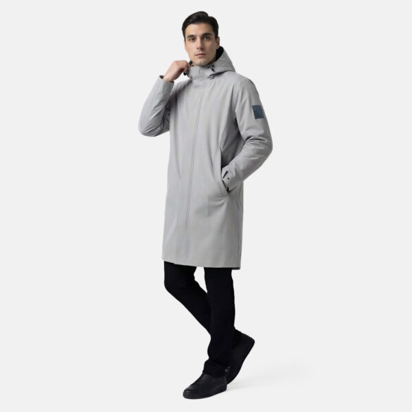 Men’s waterproof and windproof coat, suitable for spring and autumn. The outer fabric is dry-touch – which means, it has a matte effect. The lining of the parka is soft. Adjustable hood and sleeve cuffs. The outer fabric is decorated with reflective details. The front closure feature hidden magnetic snaps.