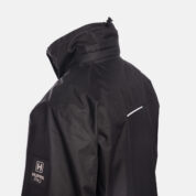 Insulated (40 g) water- and windproof jacket for men, suitable for spring and autumn. The outer fabric is breathable. The lining of the jacket is soft. Removable hood, zippered pockets and adjustable sleeve cuffs. Waterproof taped seams. Air vents under the arms. The outer fabric is decorated with reflective details.