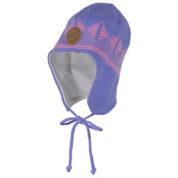 Children´s knitted spring-autumn hat. The hat is knitted from a 60% cotton, 40% acrylic yarn blend and the lining is soft cotton jersey. For more comfortable wearing, the ear parts of the hat have been extended and tie-down straps have been added to keep the hat on the head better. The ears have additional wind protection.